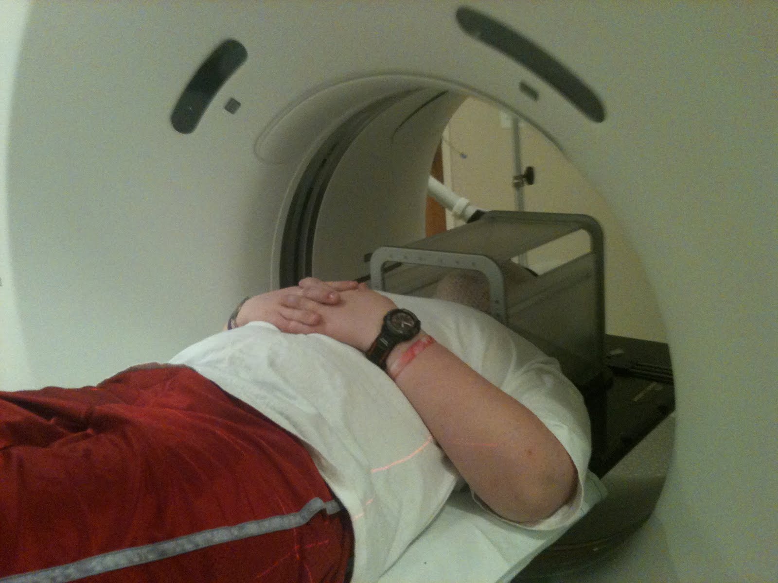 Monday we were supposed to go home. We had a quick appointment for labs, and a quick visit to clinic and then our flight was scheduled to leave that evening. When we got to clinic, Dr.Wetmore was still a little perplexed by some of Matt's labs. His lab work, during the adrenal crisis and afterward, were 'out of range' for the study that Matt is on. The study doctor wanted to pull him off of the study. I do NOT want him off the study. Of course, I don't want him to do anything unsafe, but we only have one more month until we find out if it is working! I've been anxious to get him on a VEGF receptor for a long long time. Dr.Wetmore (and I agree) felt like the strange labs were due to the adrenal crisis and illness. She wanted to do a few more tests to figure out if we can get any more answers as to why his labs were 'off'. Specifically, he had high sodium (easily explained with his DI), high Uric Acid (???They usually only see this in people with Gout???), protein in his urine, and his liver enzymes were off. She suspected kidney stones. So, off we went for a kidney u/s and a 24 hour urinalysis.